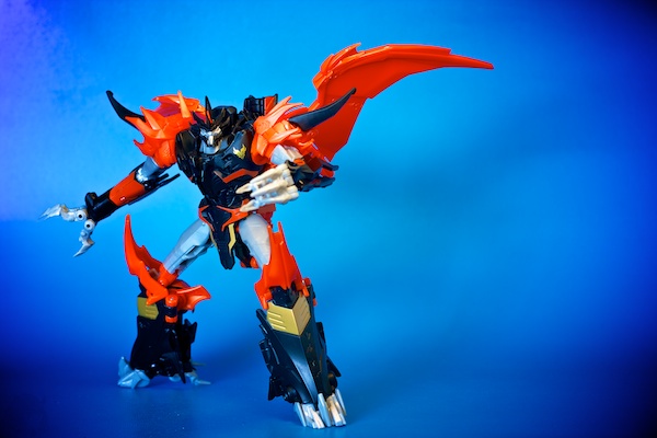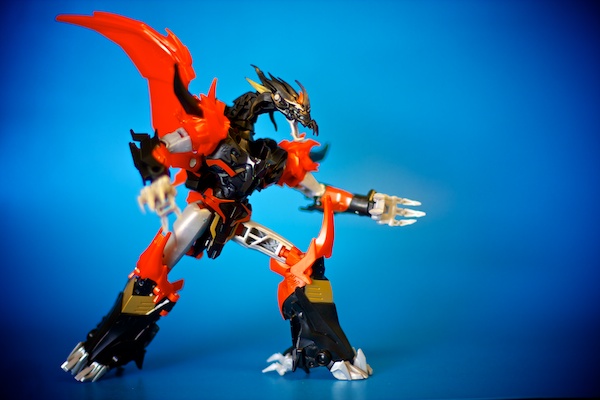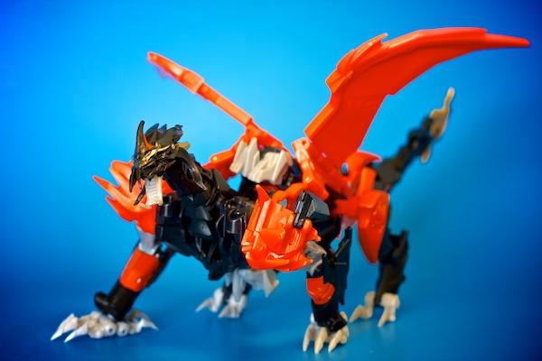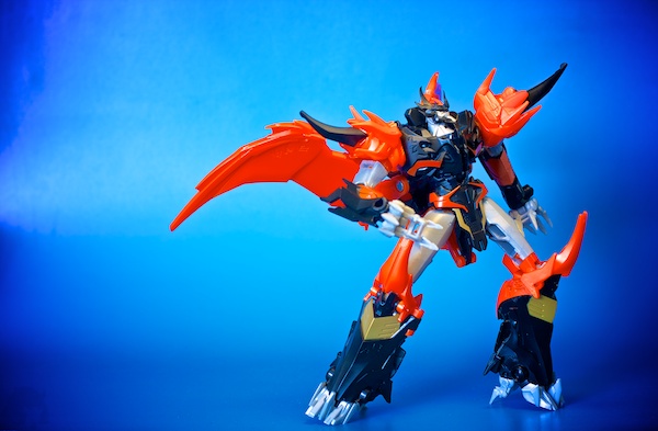 The Dragon mode is where he really shines. The wings are again able to be positioned in most configurations you would want. The legs and especially the front claws are really good at balance and natural posing. The biggest complaint I have is the lack of articulation in the back half of the figure.